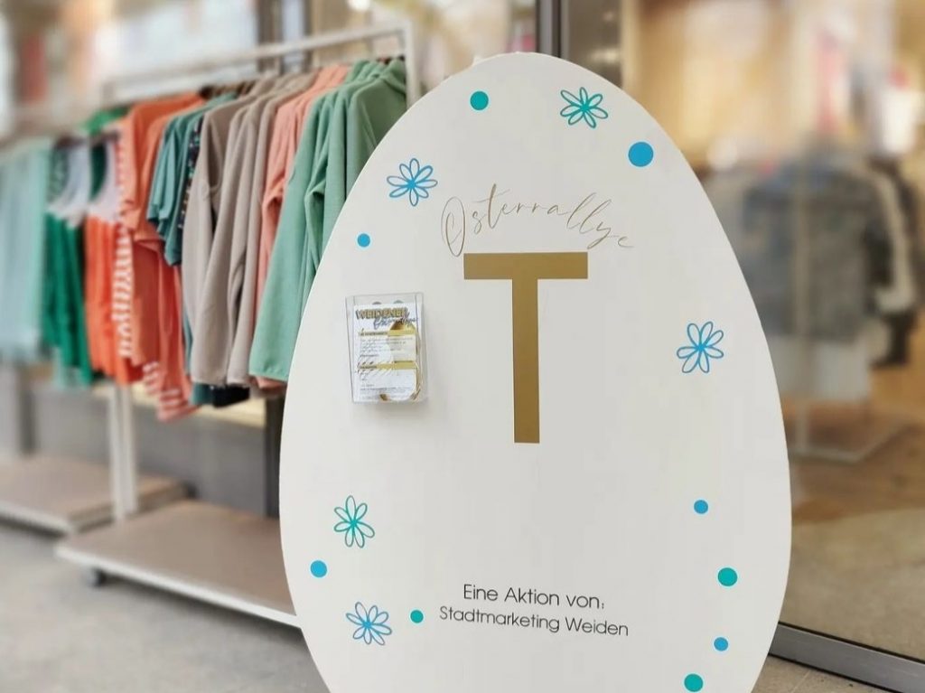 Am 23. März 2024 startete das Stadtmarketing Weiden mit einer Osterrallye durch die Weidener Innenstadt in die Osterzeit. Bunt verzierte, mit Buchstaben gestaltete Holzostereier waren bis zum 6. April 2024 in der Fußgängerzone in verschiedenen Läden zu finden.
